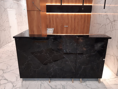 Материал отделки панелей искусственный камень, столешница искусственный камень, внутреннее наполнение ЛДСП Egger, фурнитура Blum, подсветка